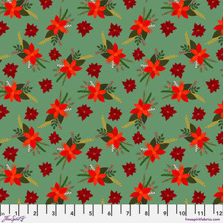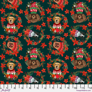 Christmas Pets Christmas Poinsettias Spruce Fabric by Mia Charro