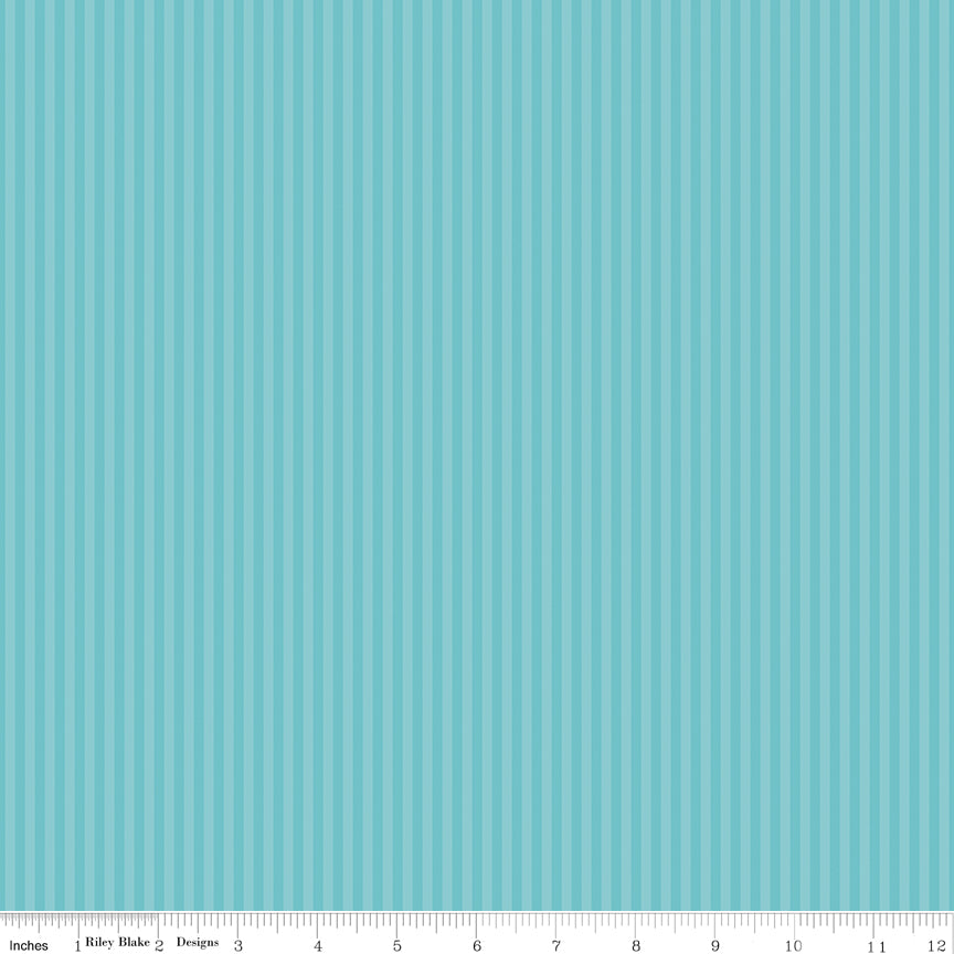 Riley Blake Stripes 1/8" Tonal Peacock Blue Fabric