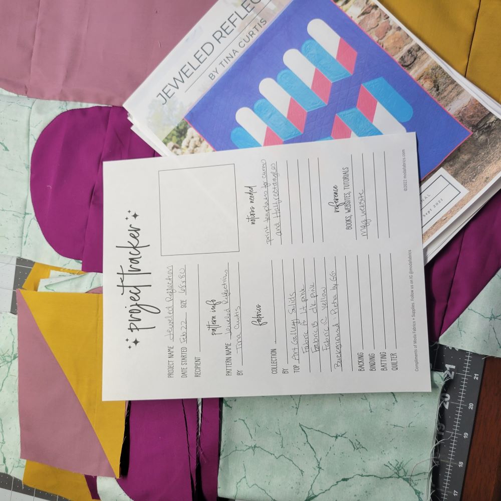 I also like a worksheet to track each project individually! This is a Tracker designed by Moda Fabrics. I print copies and put one with each project.
