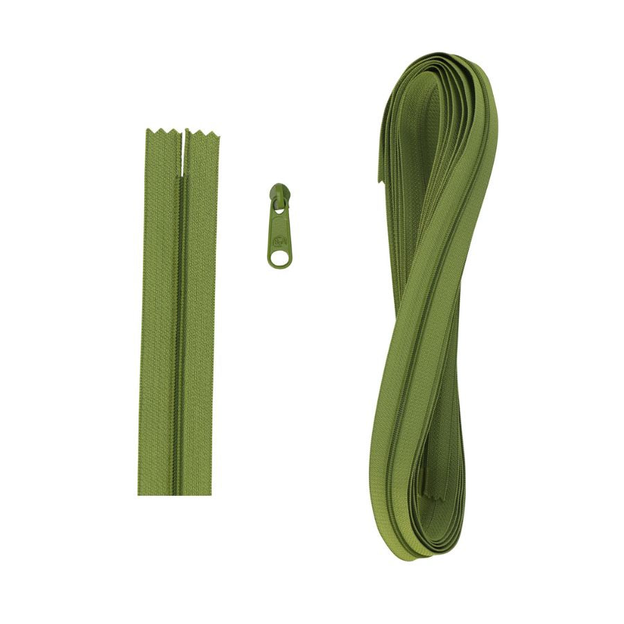 By Annie Zippers by the Yard Olive Green 4 yards of Zipper Tape with Pulls