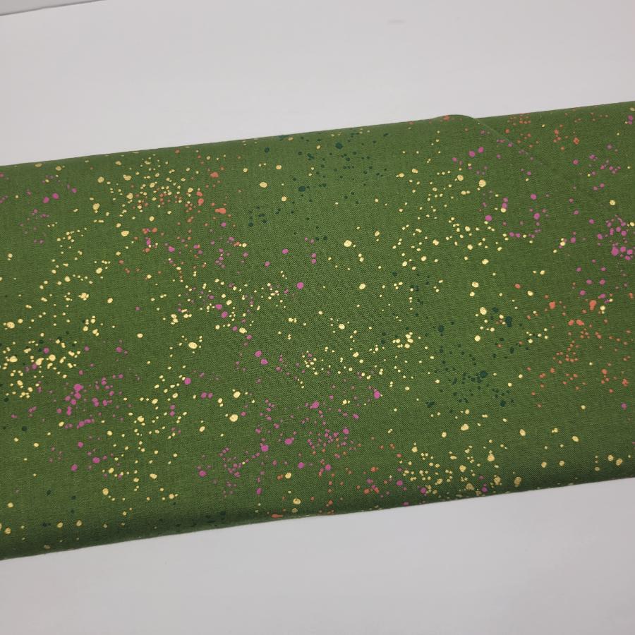 About this Fabric: Speckled is a paint splatter design by Rashida Coleman-Hale that is printed on a dyed base of soft Ruby Star Cotton. Dyeing the background color instead of printing it makes it extra lush and saturated. Nearly all the colors include metallic ink, and the are perfect as blenders or to use like solids in standalone projects.