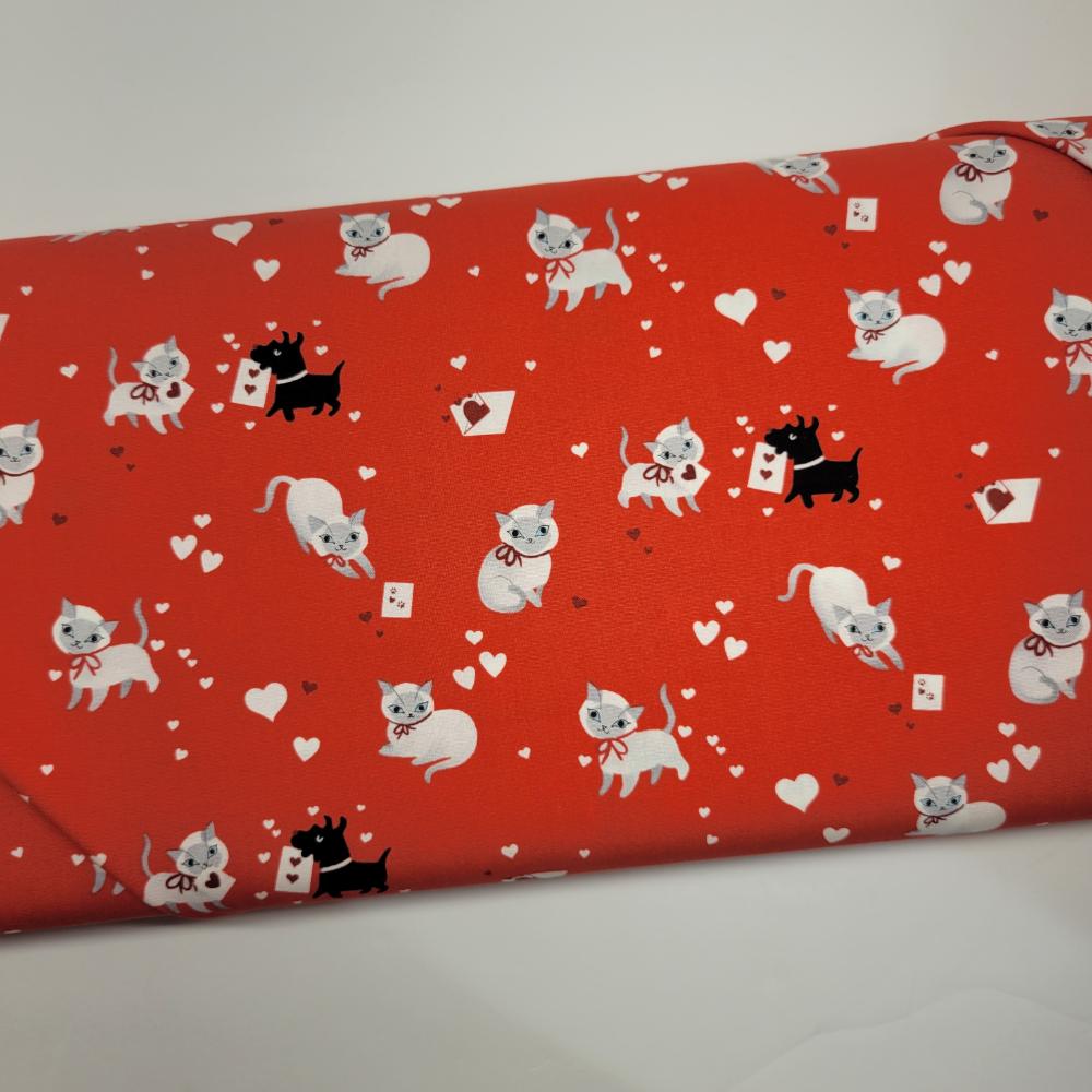 Funny Valentine Kitty Love Red Fabric by Lizzy House