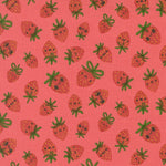 Funny Valentine Strawberries Coral Pink Fabric by Lizzy House