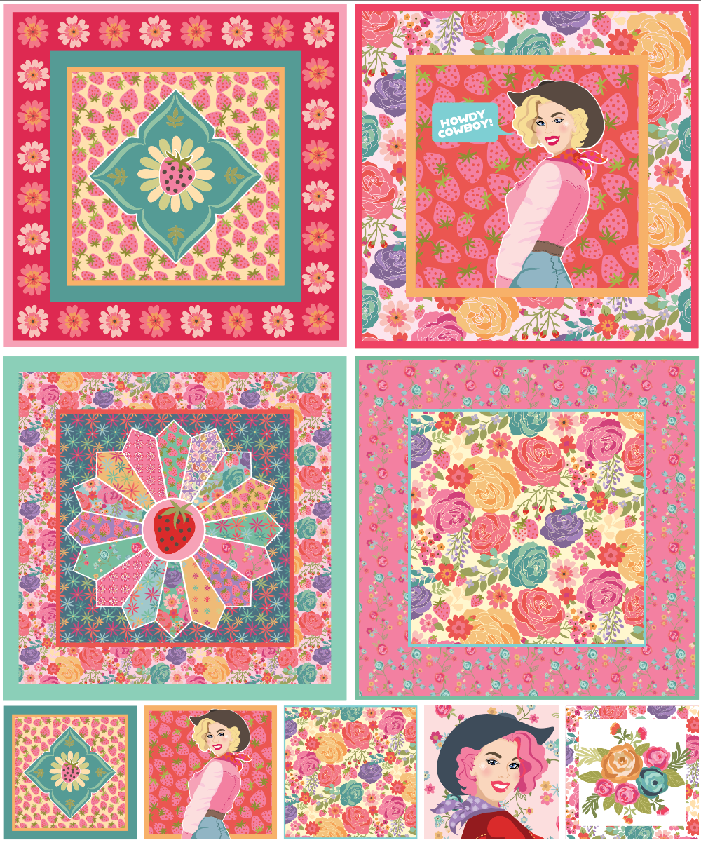 Poppie Cotton Calico Cowgirls Fabric Panel