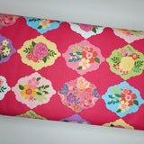 About this Fabric: This lovely collection of beautiful bright reds, pinks, corals, fuchsia, yellows, teals and purples will have you swirling with visions of projects and ideas for days to come. The colorful color palette combined with the uniquely designed flowers, berries and leaves is delightful. So many charming floral prints, a lovely paisley, yummy strawberries, vintage wallpaper, tone on tone flowers and a tossed daisy design make for such a fun and unique mix that works well on clothing, home decor and quilting.