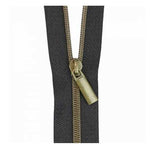 Sallie Tomato #3 Black Tape and Antique Finishe Nylon Zipper Tape