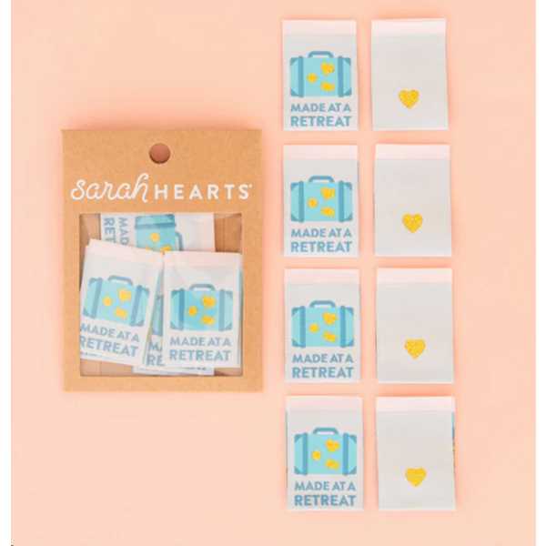 About this Item: Our “Made at a Retreat” woven labels are the perfect addition to your handmade projects that would make while on a retreat. Each label features lovely metallic gold details on the front and a petite gold heart on the back.