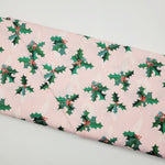 Lizzy House Tiny Christmas Holly Stripes Cotton Candy Fabric