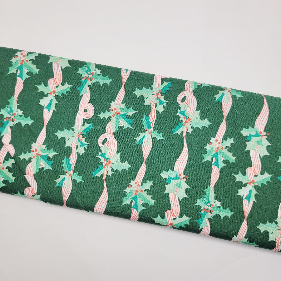 Lizzy House Tiny Christmas Holly Stripes Pine Green Fabric