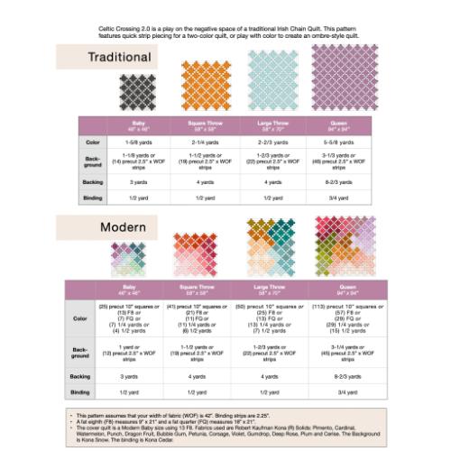 Celtic Crossing 2.0 is a play on the negative space of a traditional Irish Chain quilt. It is an updated version of my original Celtic Crossing pattern, which includes additional sizes, instructions for precuts and ombre layout options.